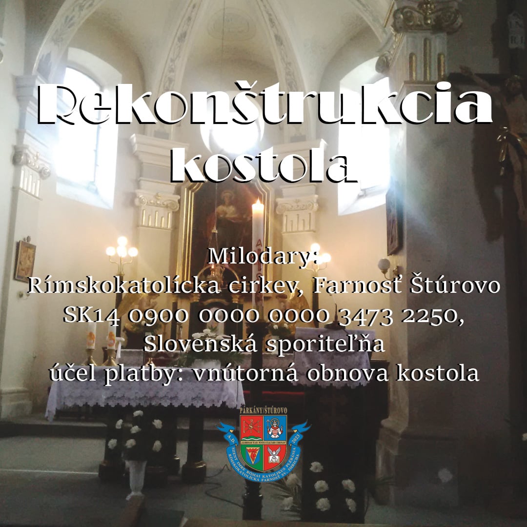 S vďakou prijímame ďalšiu finančnú podporu milých veriacich a ľudí dobrej vôle bankovým prevodom (číslo účtu nájdete na našej webovej stránke), platobnou kartou v kostole alebo v hotovosti. Pán Boh zaplať za každú pomoc!