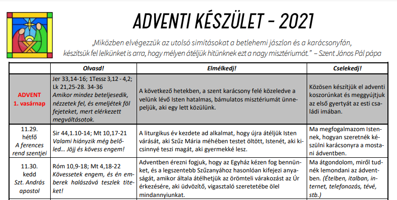 Betegek lelkipásztori ellátáásaVárom azon idősek és betegek bejelentését, akik már nem tudnak eljönni a templomba, és karácsony ünnepéhez a szentségekben kívánnak részesülni. Őket december 20-án, hétfőn a délelőtti órákban fogom látogatni. Igényük jelezhető a szentmisék után a sekrestyében vagy telefonon.