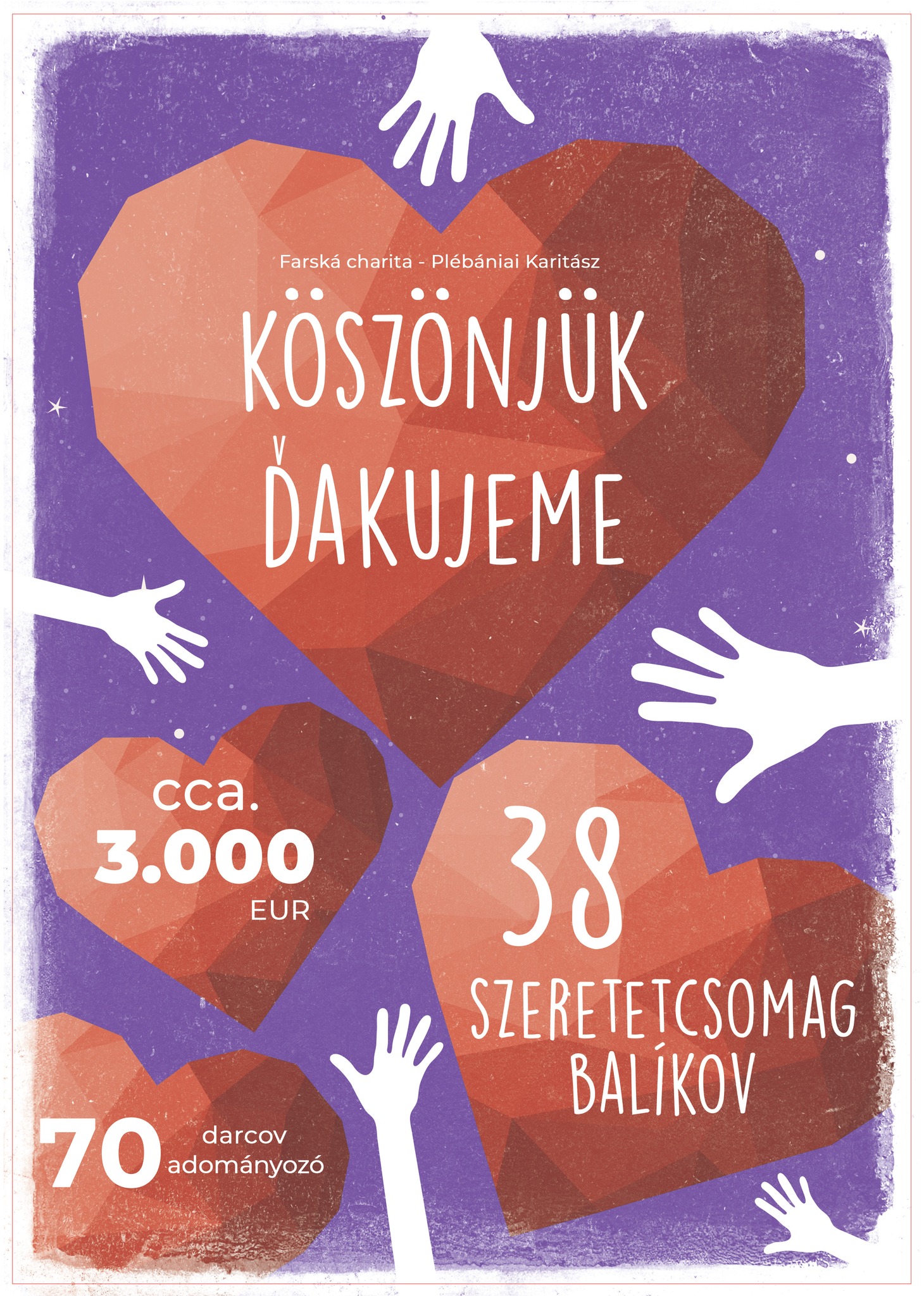 Szívből köszönjük a helyi plébániai karitász adventi tevékenységét és a hívők hozzájárulását, amellyel régiónk szegényebb családjainak életét könnyítik meg! Az Úr áldása kísérje és oltalmazza családjaitokat!