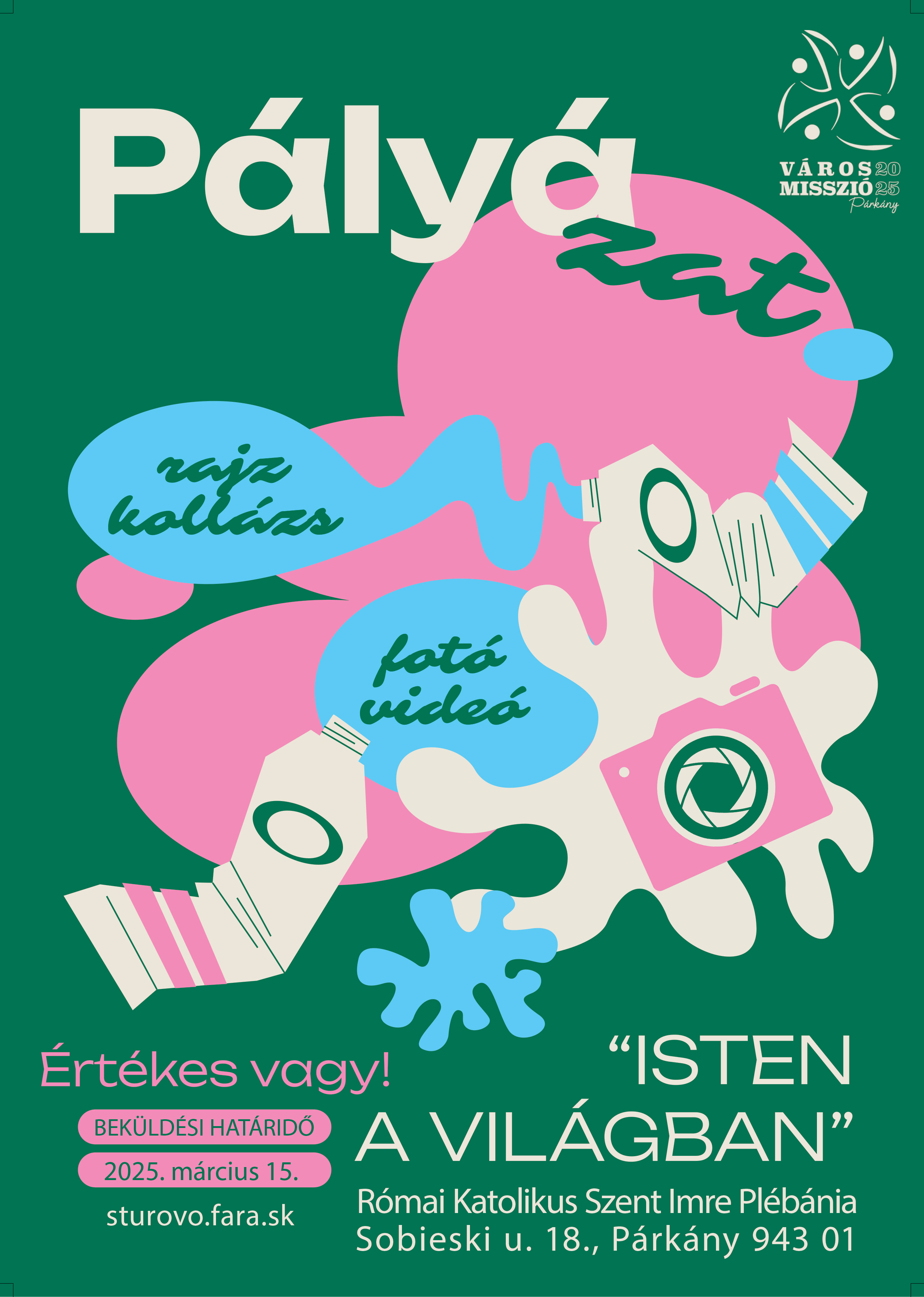 A Párkányi Szent Imre Plébánia által szervezett, 2025. április 7-13. között megrendezendő Városmisszió keretében meghirdetjük az „Isten a világban” című rajz-festmény, kollázs, fotó és videó pályázatot. Tovább...